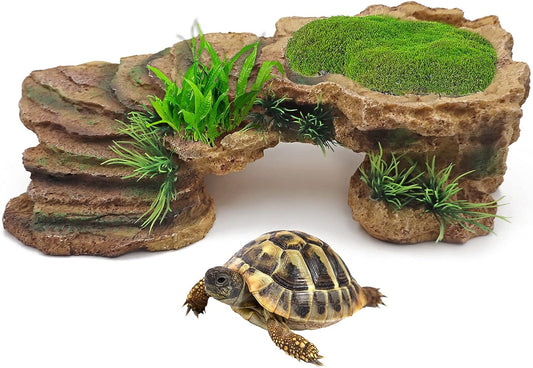 Turtle Basking Platform Reptile Terrarium Hideout Tortoise Resin Rock Hide Cave Habitat Ornament for Bearded Dragon Frogs Lizards Spiders Fish Amphibians Aquarium, Small